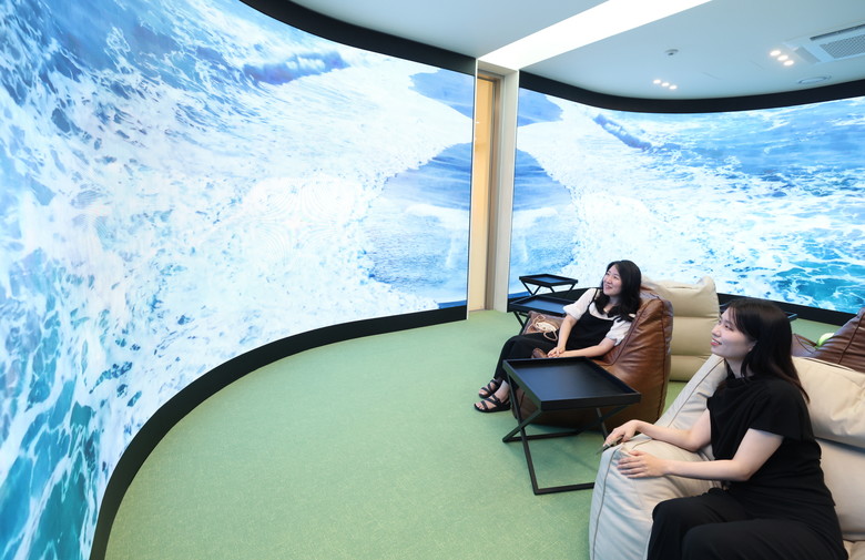 5층 미디어 라운지는 곡선형 LED 미디어월을 중심으로 설계돼 시청각 힐링 콘텐츠에 몰입할 수 있는 공간으로, 시각적 안정감과 감성적 치유 효과를 높인다. 전 층은 심리적 안정감을 주는 인테리어와 자연 요소를 반영한 설계로 구성되어 있으며, 지하 주차장에는 AI 기반 주차 유도 시스템과 LED 진출입 신호체계를 도입해 방문자 편의까지 고려했다.
