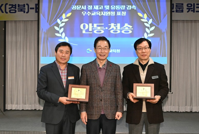 [경북 세계타임즈=한윤석 기자] 경북교육청(교육감 임종식)은 2024년 학교 발송 공문서의 유통량 감축과 질적 개선에 이바지한 우수교육지원청으로 안동교육지원청과 청송교육지원청을 선정해 교육감 표창을 수여했다고 10일 밝혔다.
