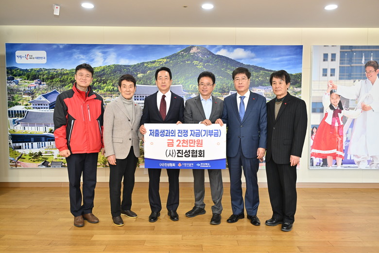 [경북 세계타임즈=한윤석 기자] (사)진성협회 최길영, 송형근 대표가 27일 경북도청을 방문해 저출생 문제 극복을 위해 꼭 필요한 사업에 써 달라며 저출생과 전쟁 자금 2,000만원을 전달했다.