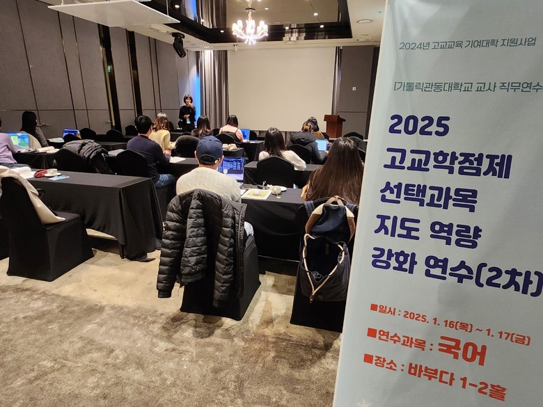 [강원도 세계타임즈=한윤석 기자] 강원특별자치도교육청(교육감 신경호)은 1월 16일(목)부터 17일(금)까지 2일간 강릉 세인트존스 호텔에서 고등학교 교원 60여 명이 참석한 가운데 가톨릭관동대학교(총장 김용승)와 공동 주관으로 2022 개정 교육과정 적용을 위한 ‘2025년 고교학점제 선택과목 지도 역량 강화 2차 연수’를 실시했다.