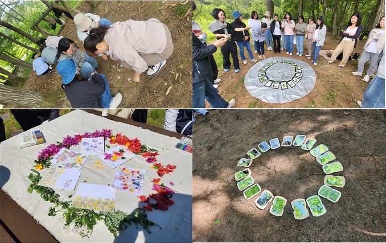 초등돌봄전담사 153명이 참여한 이번 연수에서 전담사들은 숲 생태 전문가와 함께 자연을 오감으로 느끼며 나뭇잎, 열매, 흙 등 자연물을 활용한 다양한 놀이와 생태 프로그램을 직접 체험했다.