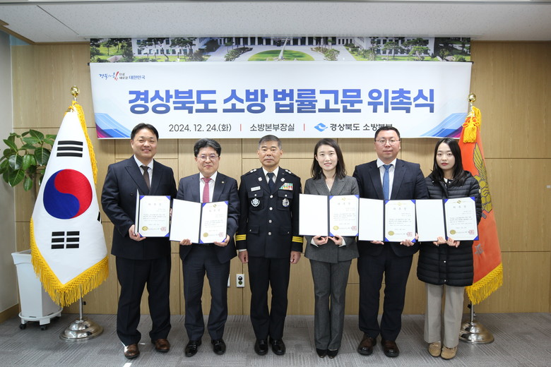 [경북 세계타임즈=한윤석 기자] 경상북도소방본부는 24일 경북도청에서 소방 활동중 발생하는 각종 분쟁에 대비하기 위해 변호사 5명을 경상북도 소방법률고문으로 위촉했다.