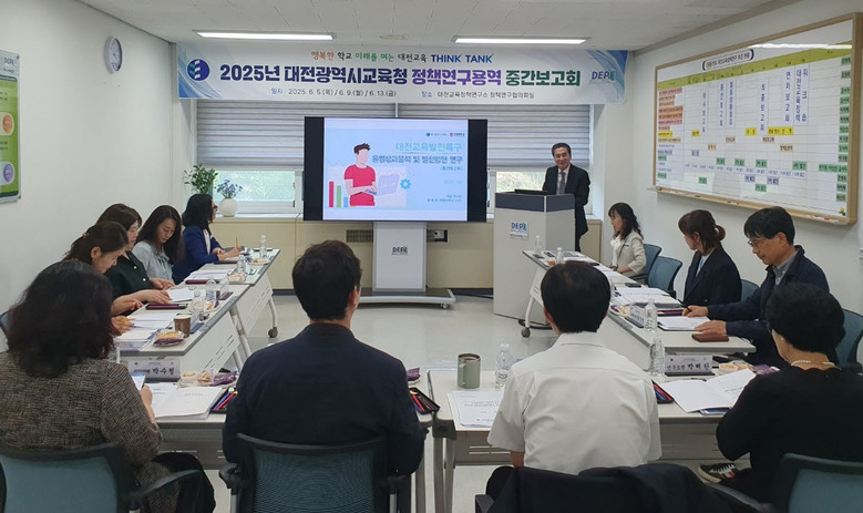 [대전 세계타임즈=이채봉 기자] 대전교육과학연구원 대전교육정책연구소는 6월 5일, 9일, 13일에 걸쳐 본관 정책연구협의회실에서 대전시교육청 정책연구용역(위탁연구) 중간보고회를 개최했다고 밝혔다.