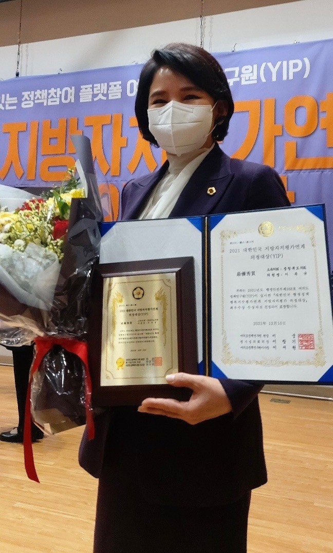 [충북=세계타임즈 이현진 기자] 충북도의회 행정문화위원회 이옥규(비례) 의원은 10일 여의도정책연구원이 평가한 ‘2021 대한민국 지방자치평가 의정대상’에서 광역의회부문 최우수상을 수상했다.