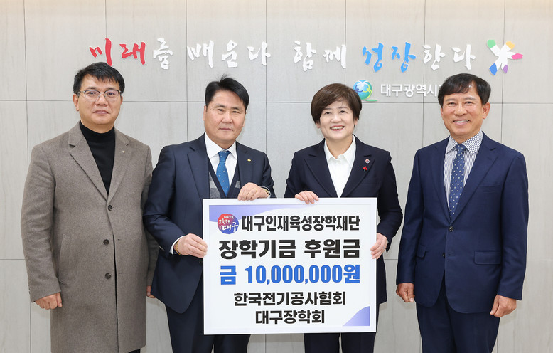 한국전기공사협회 대구광역시회(회장 이정구)는 2011년 11월 대구장학회(이사장 류석종)를 설립해 경제적 사정이 어려운 전기관련학과 고등학생과 대학생을 13년간 지원해오고 있으며, 올해부터 지역 인재육성에 더욱 도움이 되고자 대구인재육성장학재단에 장학금을 기탁하게 됐다.