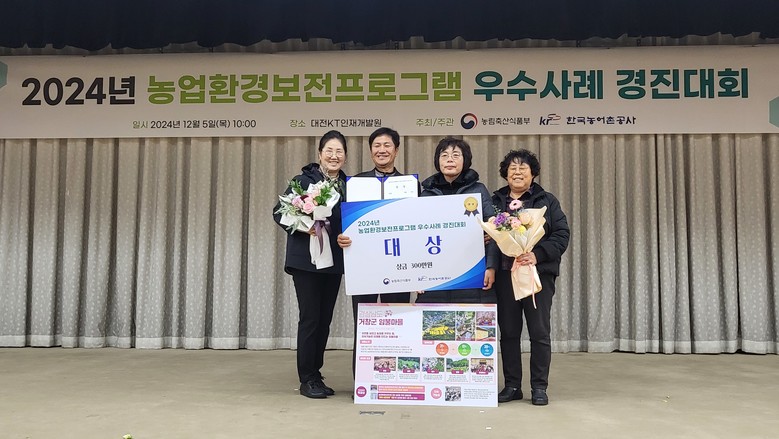 - 토양환경·수질개선 활동 부각, 생물다양성·연계분야 좋은 평가 받아 [세계타임즈=경남 최성룡 기자] 경상남도(도지사 박완수)는 5일 KT 대전인재개발원에서 농림축산식품부가 주최하고 한국농어촌공사가 주관한 ‘2024년 농업환경보전프로그램 우수사례’ 경진대회에서 거창군 임불마을이 전국 59개 마을 중 대상을 수상했다고 밝혔다.