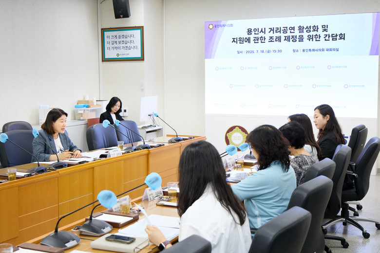[용인시 세계타임즈=송민수 기자] 용인특례시의회 김희영 의원(상현1동,상현3동/국민의힘)은 18일 의회 대회의실에서 ‘용인시 거리공연 활성화 및 지원에 관한 조례’ 제정을 위한 간담회를 개최하고, 용인시 거리예술 활성화를 위한 실질적인 방안을 논의했다.