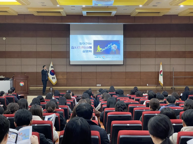 - 도 감사관이 직접 시군 공무원 대상 연례 반복되는 중요 지적사례 설명 [세계타임즈=경남 최성룡 기자] 경상남도 감사위원회는 25일과 26일 양일간 진주시와 김해시에서 도 감사관이 직접 설명하는 ‘찾아가는 감사지적사례 설명회’를 개최한다.
