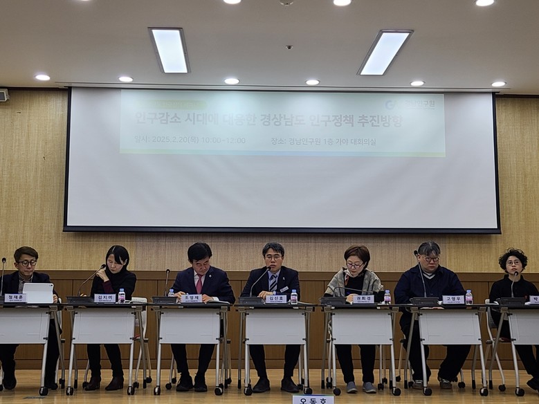 이어진 종합토론은 김지미 경남대학교 사회복지학과 교수가 좌장을 맡아 진행했다. 토론자로는 조영제 경남도의원(지역소멸대응 특위 위원장), 김신호 경남도 인구미래담당관, 권희경 창원대학교 사회복지학과 교수, 고영우 한국노동연구원 연구위원, 박지영 경남여성가족재단 연구위원 등이 참여해 다양한 시각에서 인구정책 방향을 논의했다. 시군 담당자 및 관계 전문가들의 자유토론도 이어지며, 인구 감소 문제와 해결방안에 대한 의견을 공유했다.