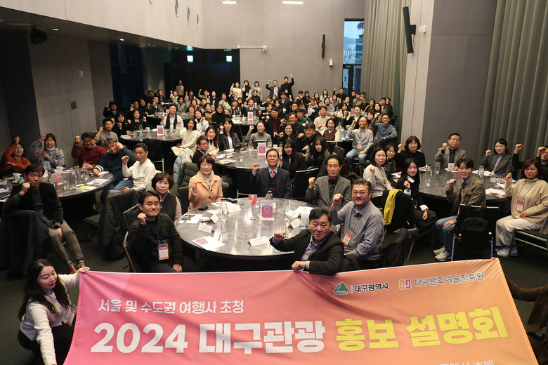 ▸ 대구 대표 축제 및 신규 관광지 홍보로 관광객 선점을 위한 전방위적 홍보 실시 [세계타임즈=대구 한윤석 기자] 대구광역시와 대구문화예술진흥원 관광본부는 12월 16일(월) 서울 라이즈 호텔(마포구 소재) 스페이스 홀에서 서울 및 수도권 여행사 초청 대구관광 홍보설명회를 성황리에 추진했다.