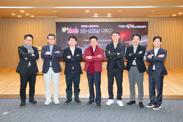 이날 특강은 트럼프 2기 출범이 한 달여 앞으로 다가온 시점에서 2025년 경주 APEC 개최를 앞둔 경상북도가 선도적으로 국제 정세를 파악해 우리나라 경제 및 주요 산업 전반에 걸친 전략의 준비와 필요하다는 이철우 도지사의 긴급 제안으로 진행됐다.