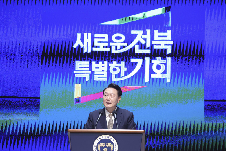 [세계타임즈 = 이채봉 기자] 윤석열 대통령은 전국 모든 지역이 골고루 발전할 때 불필요한 과잉 경쟁을 해소할 수 있고, 우리가 직면한 인구 감소와 저출산 문제도 근본적으로 해결할 수 있다고 말했다.윤 대통령은 전주 한국소리문화의전당에서 열린 전북특별자치도 출범식에 참석해 지역이 잘 살아야 민생이 좋아지고, 우리 국가 전체의 경제도 더 크게 도약할 수 있는 것이라며 이같이 밝혔다.윤 대통령은 전북은 엄청난 잠재력을 가지고 있는 곳이라며 오늘 이 순간부터 전북은 모든 면에서 완전히 달라질 것이라고 강조했다.글로벌 생명경제도시의 비전으로 대한민국 지역발전을 주도하며 힘차게 세계로 뻗어날 것이라며 전북도민 여러분 앞에 새로운 길이, 새로운 도약의 길이 활짝 열리고 있다고 했다.윤 대통령은 전북이 최대 곡창지대인 만경평야를 품고, 곳곳에 문화유산이 잘 보존돼있다면서 이러한 특별한 자산을 토대로 다양한 특화산업을 일으켜 전북 경제를 획기적으로 키우겠다고 말했다.전북특별법에는 동부권 관광벨트, 농식품 웰니스 플랫폼 구축 등 대선 후보 시절 했던 약속이 담겨있다면서 바이오 융복합 산업, 무인이동체 산업, 이차전지, 국제케이팝학교를 비롯한 미래 먹거리 산업을 전폭 지원하겠다고 약속했다윤 대통령은 전북이 비약적 발전을 이루고 대한민국의 성공으로 이어질 수 있도록 직접 꼼꼼히 챙기겠다며 대한민국의 미래를 위해 전북특별자치도가 반드시 성공해야 한다고 말했다.행사에는 이상민 행정안전부 장관, 우동기 지방시대위원장, 김관영 전북도지사, 김진태 강원도지사, 오영훈 제주도지사, 최민호 세종시장, 한오섭 정무수석을 비롯해 전북 지역 경제계·종교계·문화계 대표 등 도민 2천여명이 참석했다.