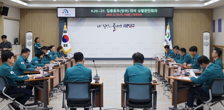 대덕구는 20일 밤부터 21일 오전 사이 매우 강한 비와 강풍이 불 것이라는 기상청의 전망에 따라 19일 구청 대회의실에서 상황판단 회의를 개최했다고 밝혔다.