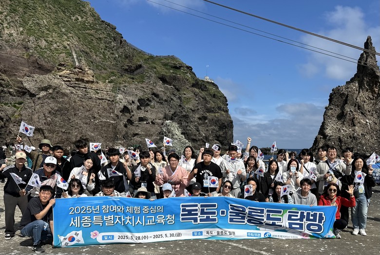 [세종 세계타임즈=이채봉 기자] 세종특별자치시교육청(교육감 최교진, 이하 세종시교육청)은 5월 28일부터 2박 3일간 세종시 관내 고등학생과 교원 등 총 48명을 대상으로 『2025학년도 참여와 체험 중심의 독도.울릉도 탐방』을 실시했다고 밝혔다.