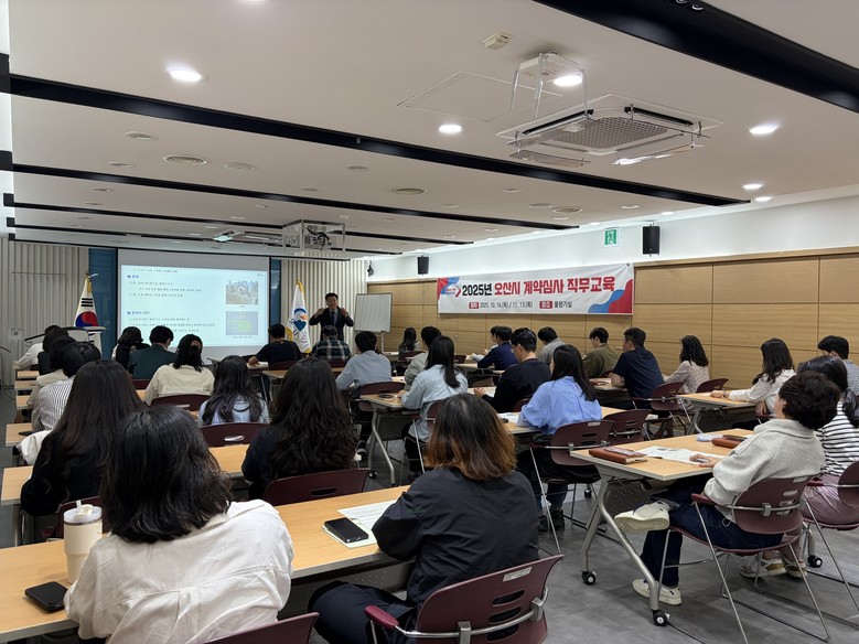 [오산시 세계타임즈=송민수 기자] 오산시(시장 이권재)는 지난 16일 오산시청 물향기실에서 본청 및 산하기관 발주 담당자 45명을 대상으로 ‘2025년 계약심사 직무교육’을 실시했다고 밝혔다.