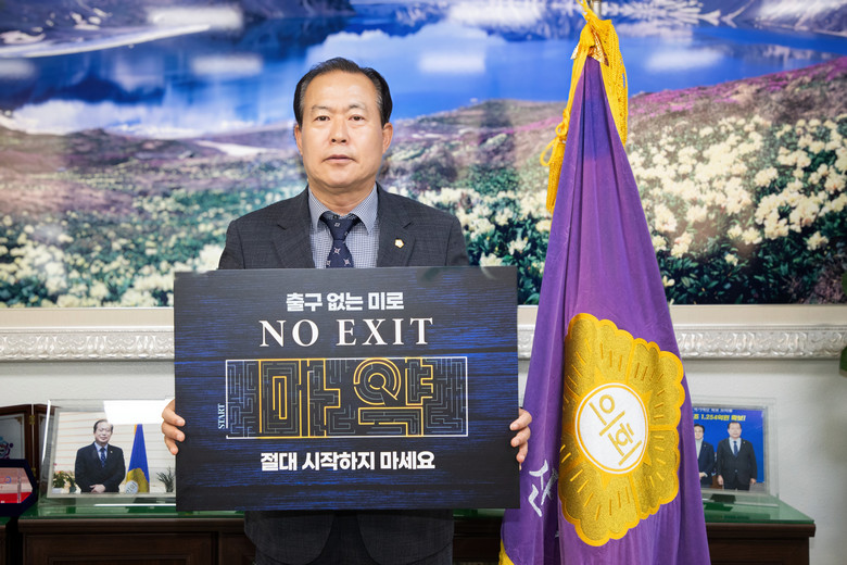 [군산=세계타임즈 = 이연희 기자] 군산시의회 김영일 의장은 지난 11일 마약 범죄 근절을 위한 ‘NO EXIT’ 마약 예방 캠페인에 참여했다.