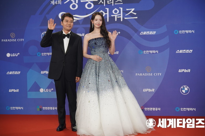 18일 오후 인천 파라다이스시티에서 ‘제4회 청룡시리즈어워즈(BSA)’ 레드카펫 행사가 열린 가운데'전현무'와 '윤아'가 레드카펫 행사에 참석해 포토타임을 갖고 있다.