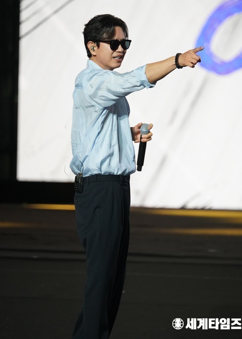 8일 오후 서울 코엑스 앞 영동대로에서 '2025 강남 페스티벌 영동대로 K팝 콘서트'가 진행된 가운데 가수 '김민종'이 열창을 하고있다.