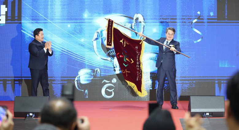| ▲전국장애인체전 종합우승기 봉납.(사진=경기도청) |