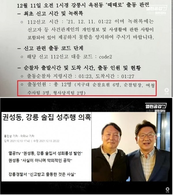 열린공감TV는 14일 방송을 통해 권성동 사무총장이 성적인 언동으로 해석될 여지가 다분한 부적절한 말을 처음 보는 유권자에게 건네 성적 수치심을 유발하는 발언을 한 사실을 목격자 증언을 통해 확인했다”며 “본인의 언행으로 유권자에게 불쾌감을 줬다면 사과부터 하는 것이 마땅하다”고 충고했다.