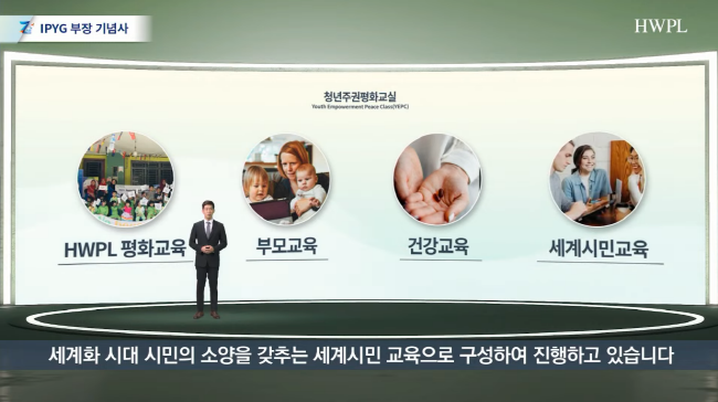 HWPL 산하단체 국제청년평화그룹(IPYG)은 111개국 851개 청년단체와 연합해 네트워크를 구성하고 있으며 코로나19 팬데믹 상황에서 청년주권평화워크숍(YEPW)과 청년주권평화교실(YEPC)를 개설해 운영하고 있다. 현재 세계 35개국 450여 명의 청년지도자가 이 과정을 수강하고 있다.
