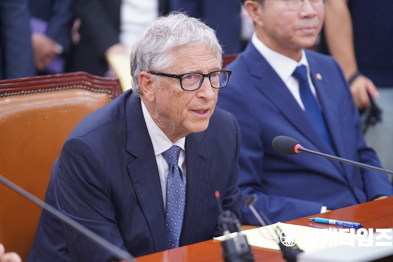 '빌 게이츠' 게이츠재단 이사장이 21일 서울 여의도 국회 외교통일위원회를 찾아 '한국의 글로벌 조건 기여와 리더십'을 주제로한 간담회에서 발언을 하고 있다.
