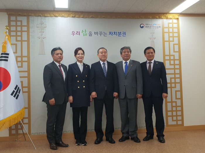 [대구=세계타임즈 한성국 기자] 대구광역시의회 배지숙 의장(시‧도의장협의회 부회장)은 전국시·도의회의장협의회 회장단과 10월 11일(목) 정순관 대통령직속 자치분권위원장을 예방하고 「자치분권 종합계획」에 관한 시도의회 의견 전달과 지방의회의 독립성 강화 및 전문성 제고 등 지방의회 당면 현안에 대한 협조를 요청하는 정책간담회를 가졌다.