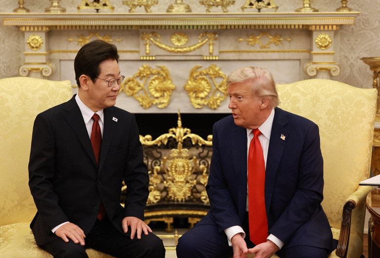 [세계타임즈 = 이채봉 기자] 이재명 대통령과 도널드 트럼프 미국 대통령이 25일(현지시간) 미국 워싱턴DC 백악관에서 정상회담을 하고 있다. 2025.8.26