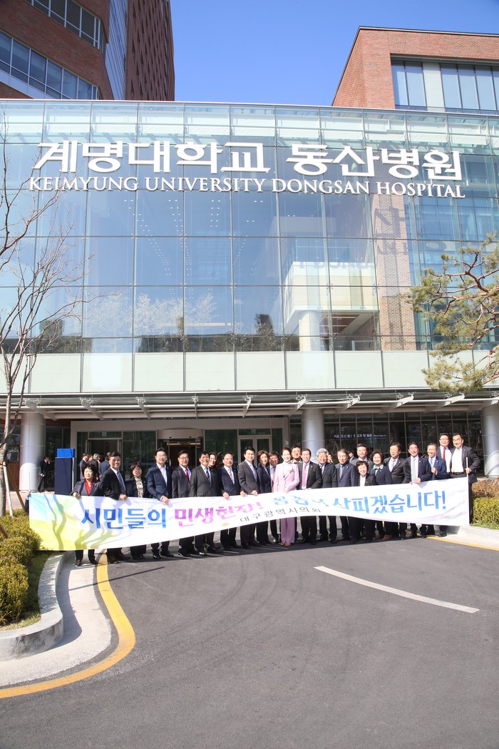 대구광역시의회는 3월 임시회 개회식 직후 구암마을 팜스테이 현장을 방문한 데 이어, 폐회식 후에는 전체 의원들이 참석한 가운데 4월 15일 성서로 이전해서 개원을 앞두고 있는 계명대학교 동산병원을 찾아 민생현장 탐방을 펼쳤다.