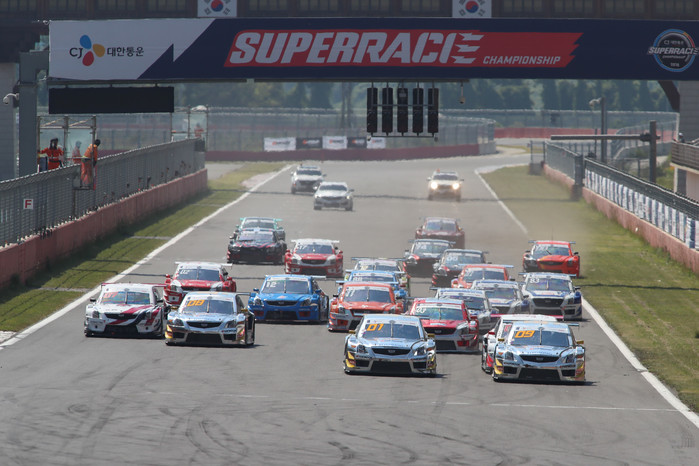 [사진설명] 지난해 코리아인터내셔널서킷(KIC)에서 열린 슈퍼레이스 챔피언십 3라운드 슈퍼 6000 클래스 결승전에서 레이스 머신들이 힘차게 스타트하고 있다.