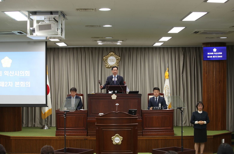[익산=세계타임즈 이정술 기자] 익산시의회(의장 최종오)가 19일 제259회 임시회 제2차 본회의를 열고 ‘국가유산체제 전환에 따른 익산시 21개 조례 일괄개정조례안’, ‘익산시 공유재산(구마동주민센터) 사용료 감면 동의안’ 등 총 8건의 안건을 의결하고 폐회했다.