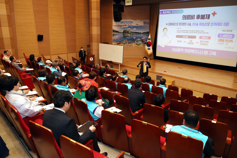 이날 김영환 지사는 먼저 △민선 8기 투자유치 56조 돌입 △청남대 규제 완화 △중부내륙시대 개막 △문화공간 확충 등 그간의 성과에 대해 공유했고, △일하는 밥퍼 △충북형 도시농부.도시근로자 △의료비후불제 △영상자서전 △출산.육아 정책 등 충북도의 현안 사업을 설명했다.