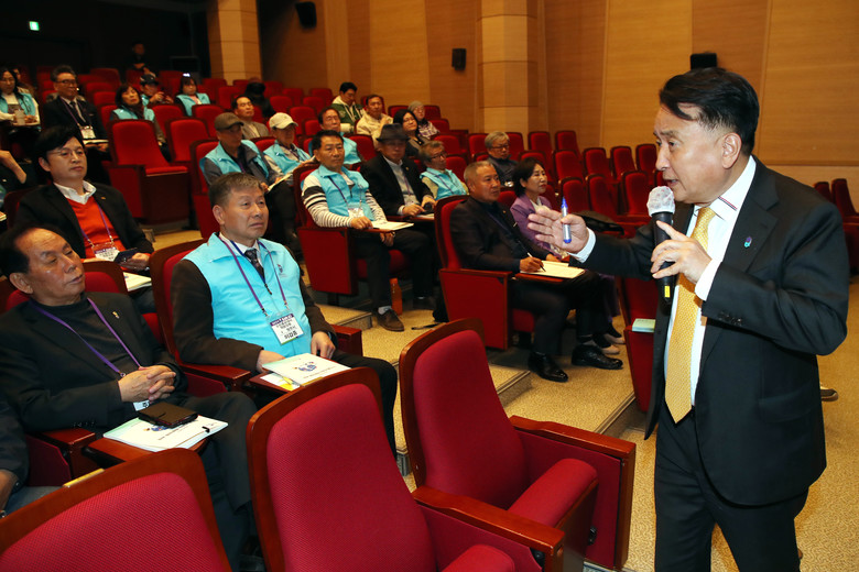 김영환 충북도지사는 28일 충청북도자치연수원에서 도민홍보대사 60여 명을 대상으로 특강에 나섰다.