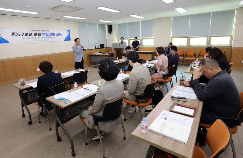 [계양구 세계타임즈=심하린 기자] 인천 계양구 의회(의장 조양희)가 지난 23일 작전2동 행정복지센터 대회의실에서 제1차 정례회를 앞두고 의원 역량강화 교육을 실시했다.