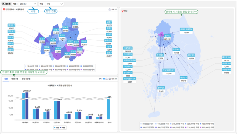 강옥현 서울시 디지털도시국장은 “서울로의 인구 유입은 규모보다 전입 목적과 이동 방식의 변화에 주목할 필요가 있다”며, “개인 단위 전입과 청년층 유입이 확대되는 추세에 맞춰, 인구이동 데이터를 기반으로 정책 분석과 도시 전략 수립의 정밀도를 높여 나가겠다”고 말했다.