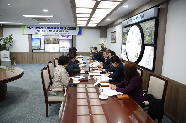 [익산=세계타임즈 이정술 기자] 익산시의회(의장 최종오)는 26일 오전 의장실에서 대한숙박업중앙회 익산지부(지부장 김용만)와 지역경제 활성화를 위한 간담회를 개최했다.