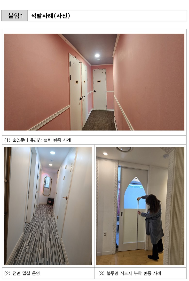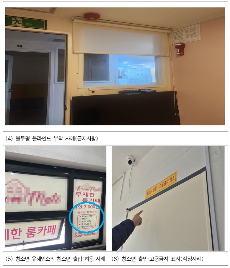- 청소년 출입·고용 금지 업소에서 불투명 시트지 등을 설치하고 청소년 출입 허용
