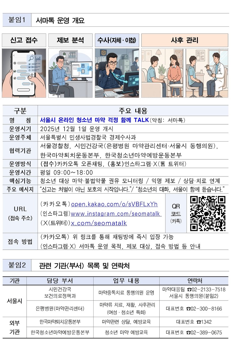 - 서울시, 전국 최초 대화형 청소년 마약 문제 신고 채널 운영 개시