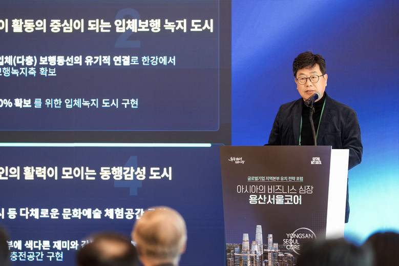 이어 용산공원 및 한강과 맞닿은 쾌적한 자연환경과 철도망 기반의 뛰어난 공항 연결성 등 용산서울코어만의 독보적인 공간적 가치를 언급하며, 이를 단순한 인프라를 넘어 글로벌 기업 유치를 위한 ‘핵심 경쟁력’으로 전면에 내세워야 한다고 강조했다.