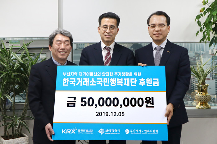 한국거래소 정지원 이사장은 “거래소는 부산지역 어르신들의 행복하고 안전한 노후 생활을 위한 사회공헌활동을 지속해 나아갈 것” 이라고 밝혔다.