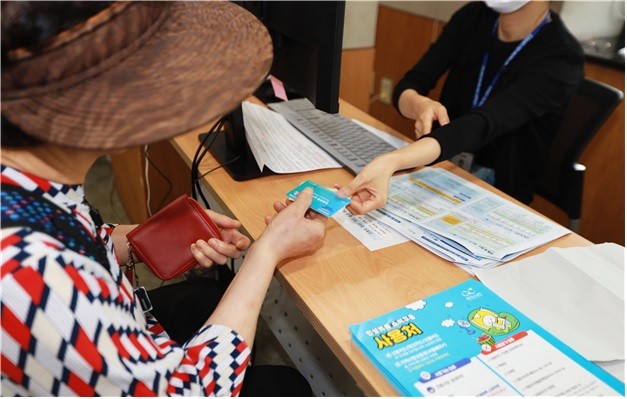 | ▲ 한 금천구민이 동주민센터에서 민생회복 소비쿠폰을 지급받고 있다 |