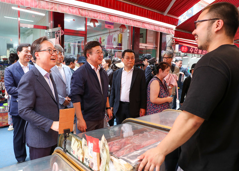 | ▲ 유성훈 금천구청장과 윤호중 행정안전부 장관이 지난 7월 24일 시흥1동을 방문해 민생회복 소비쿠폰 관련 지역주민 목소리를 청취했다 |