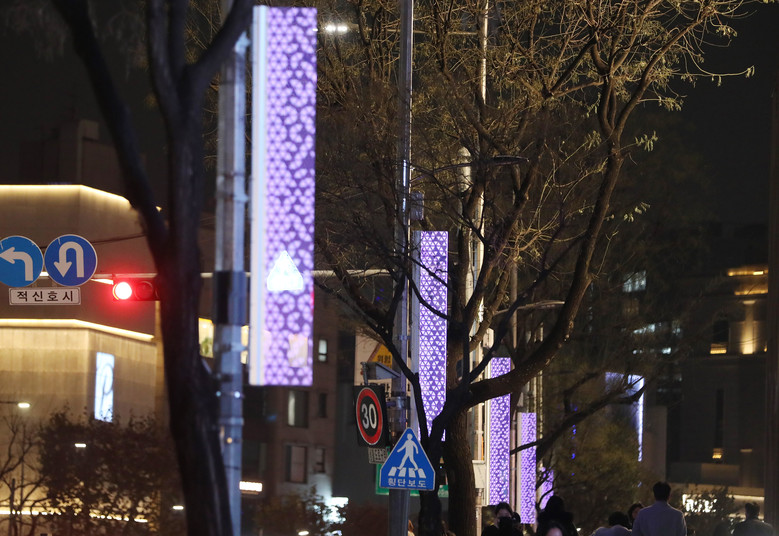 총 700m 구간 양방향 가로등에 설치된 경관 조명은 60개. 가로 300mm, 세로 2400mm 크기의 직사각형 형태로, 보석의 기하학적 패턴에 다양한 색상을 입혀 감각적인 분위기를 연출한다. 이 조명은 가로등과 연동돼, 가로등이 켜지면 함께 점등되고 꺼지면 함께 소등되며 보행자의 안전과 도시의 야경미를 함께 살린다. 이와 함께 보석, 꽃다발, 나비, 포인세티아 등 4종 이미지 조명을 2곳에 설치해 감성적인 연말 풍경을 완성했다.