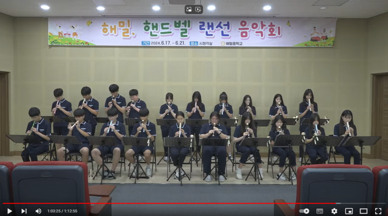 [세종 세계타임즈=이채봉 기자] 해밀중학교(교장 이경영, 이하 해밀중)는 6월 17일부터 6월 21일까지 유튜브를 이용한 ‘제1회 핸드벨 랜선 음악회’를 열었다.