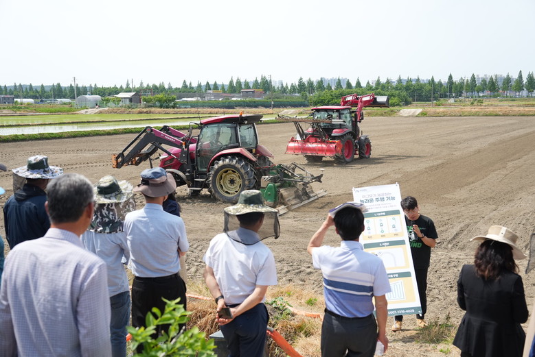 또한, GPS 기반 균평기, 트랙터 자율주행, 드론 방제 등 첨단 디지털 영농기계가 함께 시연되어 농작업의 정밀성과 효율성을 현장에서 직접 확인할 수 있었다.