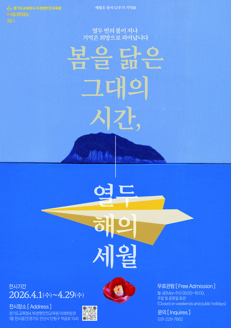 ◦ ‘기억에서 배움으로, 배움에서 희망으로’ 두 전시 연계 메시지 전달 [경기도 세계타임즈=송민수 기자] 경기도교육청4.16생명안전교육원(원장 전명선)이 세월호 참사 12주기를 맞아 4.16기억저장소와 공동으로 2건의 기억 전시를 개최한다.