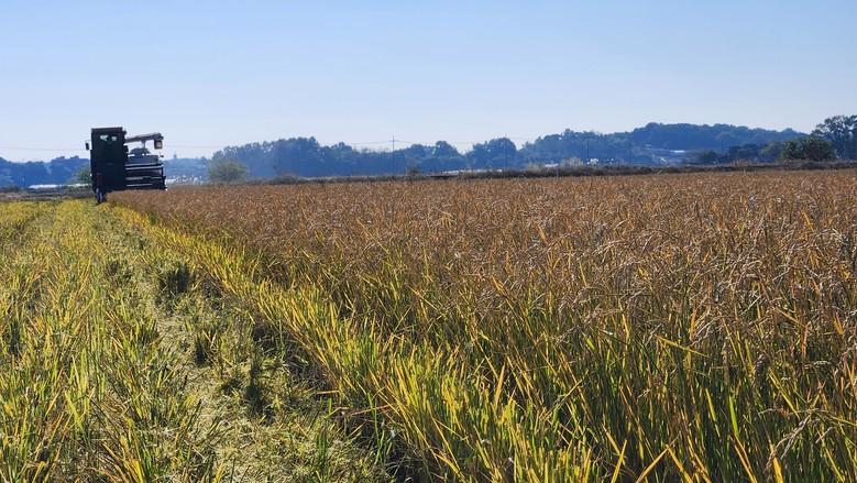| ▲ 3일 당진시 송악읍 논에서 콤바인이 움벼 수확을 하고 있다 |