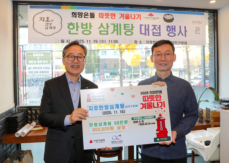 - 시흥1동 지호한방삼계탕, 저소득 어르신에게 식사 대접 [금천구 세계타임즈=이장성 기자] 금천구(구청장 유성훈)는 추운 겨울을 앞두고 어려운 이웃을 향한 훈훈한 손길이 이어지고 있다고 27일 밝혔다.