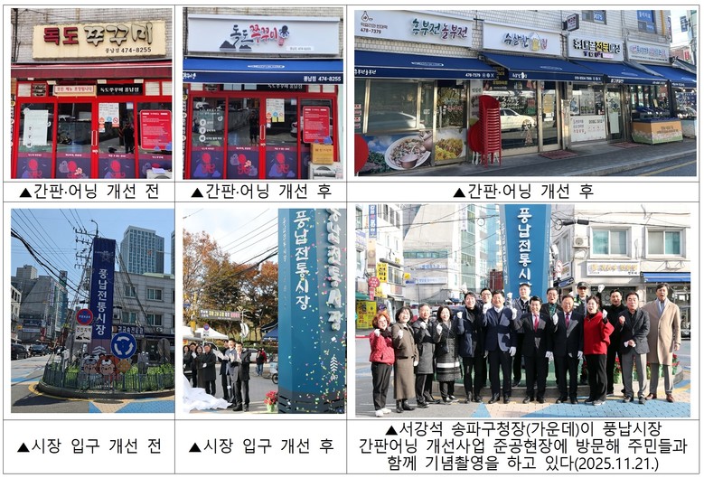 140여 개 점포 개별상담 통해 간판·어닝 탈바꿈…지역 상권 활성화 기대 [송파구 세계타임즈=이장성 기자] 송파구 풍납시장이 몰라보게 달라졌다!