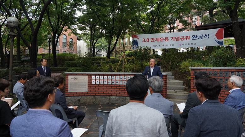 이날 완공 기념 축사에서 윤동한 회장은 “3.8만세운동은 우리 민족의 함성이며 계성의 정신이 담긴 만세운동으로, 민중의 민족의식을 일깨우는 계기가 되었다.”라며, 공원을 설립하여 그 뜻을 기념할 수 있게 되어 기쁘고, 앞으로 계성고 모두가 함께 이어나가야 할 책임이 있다.”고 말했다.